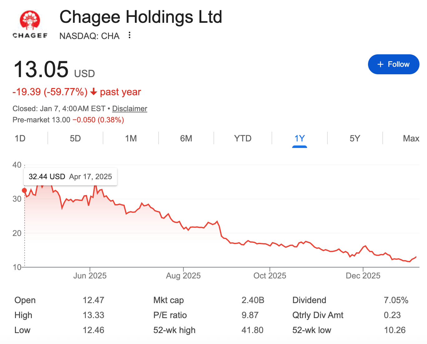 Since Chagee’s high-profile NASDAQ debut in April 2025, Chagee’s stock has been in a freefall, losing 60% of its value.