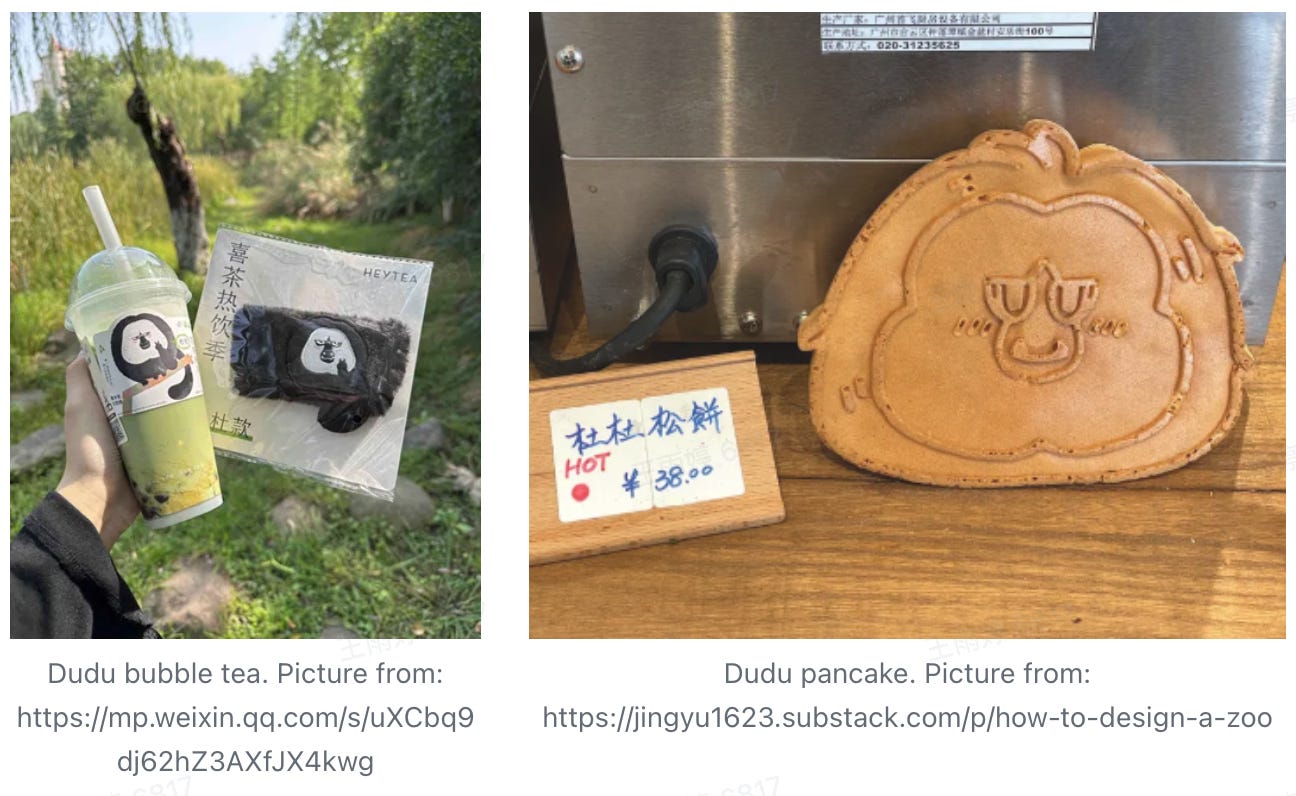 If you observe closely, many “national-level” IPs in China are also “ugly but cute.” For instance, one viral figure is Dudu from Nanjing Hongshan Forest Zoo.