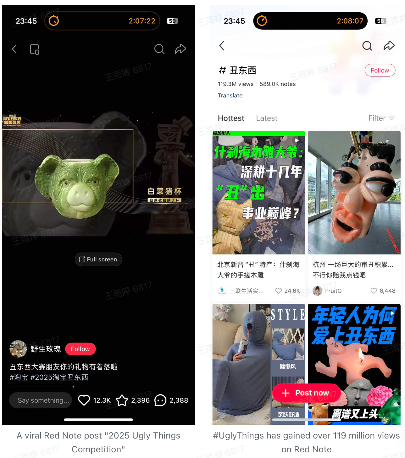 Over the past few years, sharing “ugly but cute” things on Chinese social media like Xiaohongshu has become a trend. Young consumers post photos of the “ugly” yet one-of-a-kind souvenirs and keepsakes they bought serendipitously, often with captions like: “The uglier it is, the cuter it gets—the uglier, the more I want it.“ In contrast, many painstakingly perfected items ironically see poor sales.