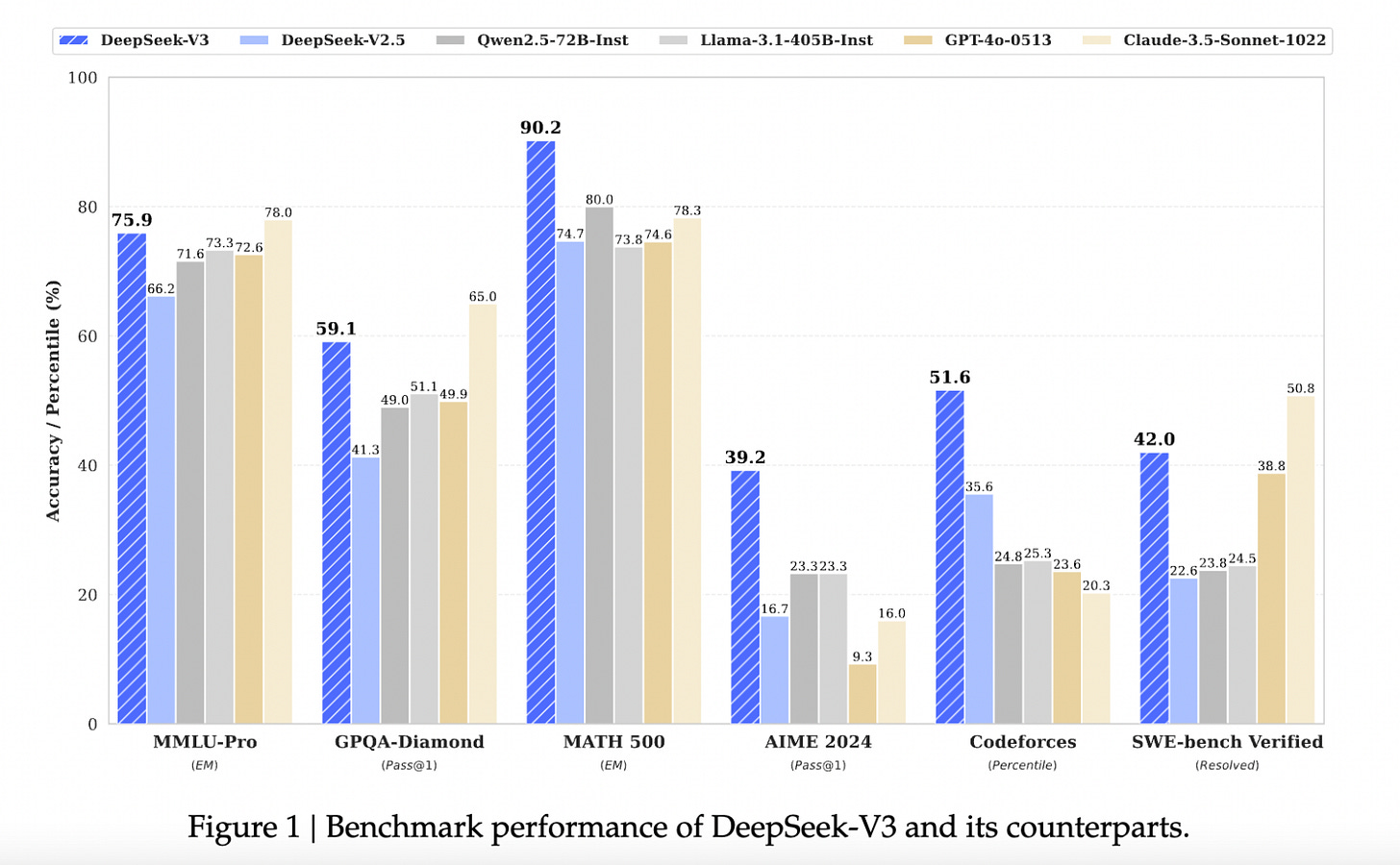 Founded in May 2023 by a team backed by China’s quant hedge fund giant, High-Flyer, DeepSeek’s latest open-sourced LLM, DeepSeek V3, now competes head-to-head with the likes of GPT-4 4o, Llama 3.1, and Claude 3.5. But here’s the kicker: this astonishing progress was made with H800 chips, done within less than two years, and still managed to significantly reduce costs to 1/7 of the Llama 3 70B and 1/70 of the Gpt-4 turbo. The team achieved this by innovating the model’s architecture. In terms of math and coding capabilities, it even outperformed the hottest models currently coming out of Silicon Valley.