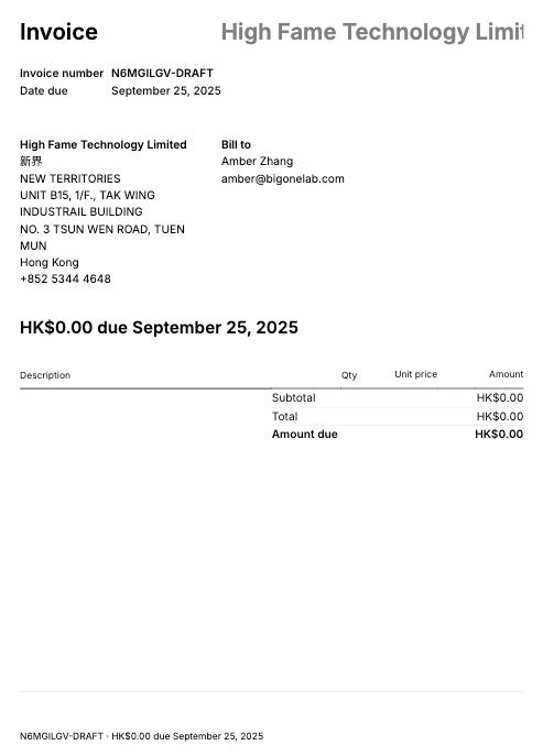 If your organization requires an invoice, simply email baiguan@bigonelab.com after completing your payment. We’ll issue a Stripe invoice (example attached).